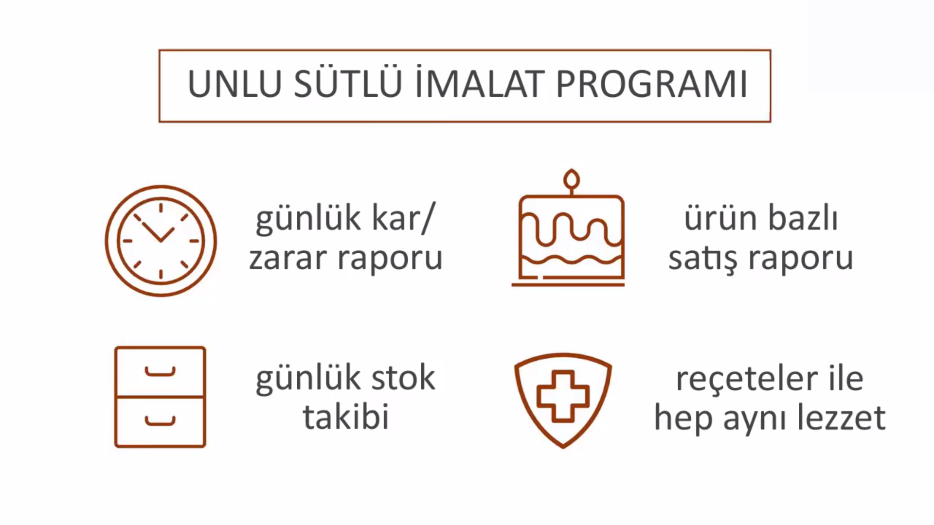 Adisyon programları ile entegre çalışabilen bir programdır. Unlu, Sütlü İmalat Programı’nın genel özelliği işletmelerin mutfağını da yönetmesini sağlamasıdır.